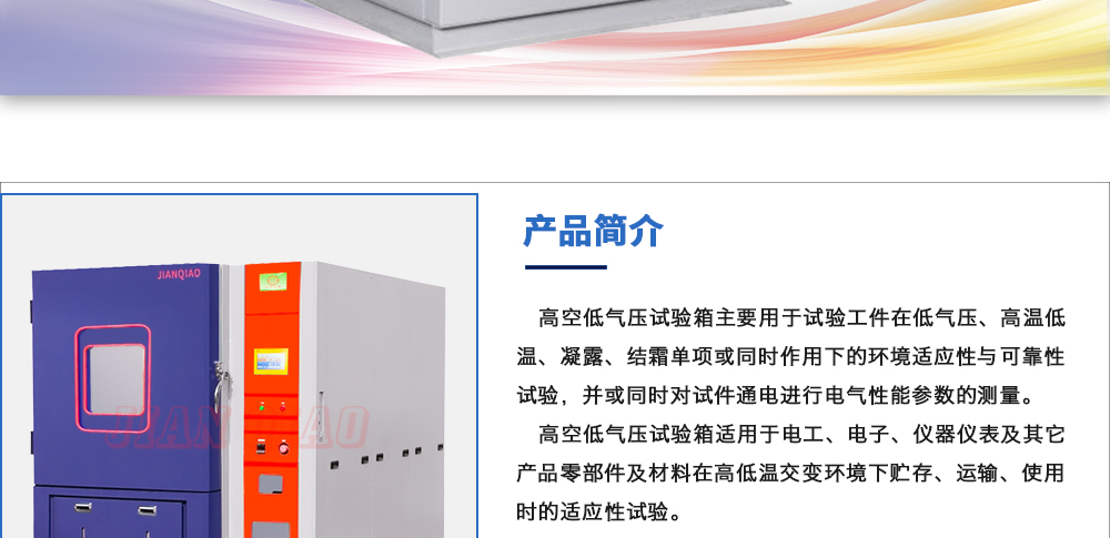 產(chǎn)品型號:JQTA-504 品牌:劍 喬 用途:高低溫低氣壓試驗箱主要用于試驗工件在低氣壓、高溫低溫單項或同時作用下的環(huán)境適應性與可靠性試驗,并或同時對試件通電進行電氣性能參數(shù)的測量。咨詢熱線:13829135130
